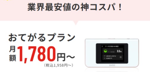 おてがるプランは月間20ギガまでの小容量プランで、モバイルWiFiが初めてのお客さまにもご好評をいただいています。