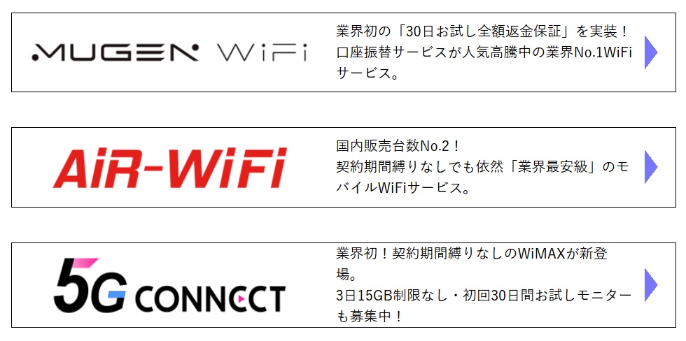 FREEDiVEとしては3つのモバイルWiFiサービスを提供している