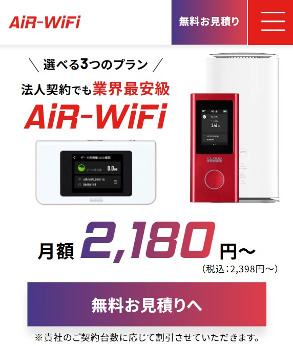 AiR-WiFiはクラウドSIMを使ったモバイルルーターのレンタルサービスとして2021年2月25日のリリース以来、国内販売台数2位を獲得するなど多くのユーザーに支持されている。