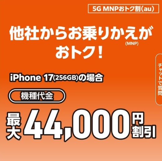 | 新規申込 他社から乗り換え | 44,000円 | 新規契約もしくは他社から乗りかえで対象機種をご購入 |