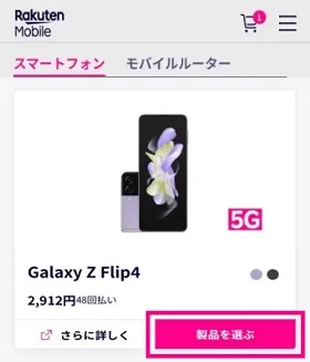 ご希望の端末を選び、「製品を選ぶ」を押してください。 スマホ購入