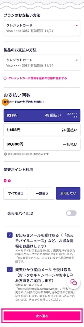 Web申し込み楽天モバイルの公式サイトから申し込み