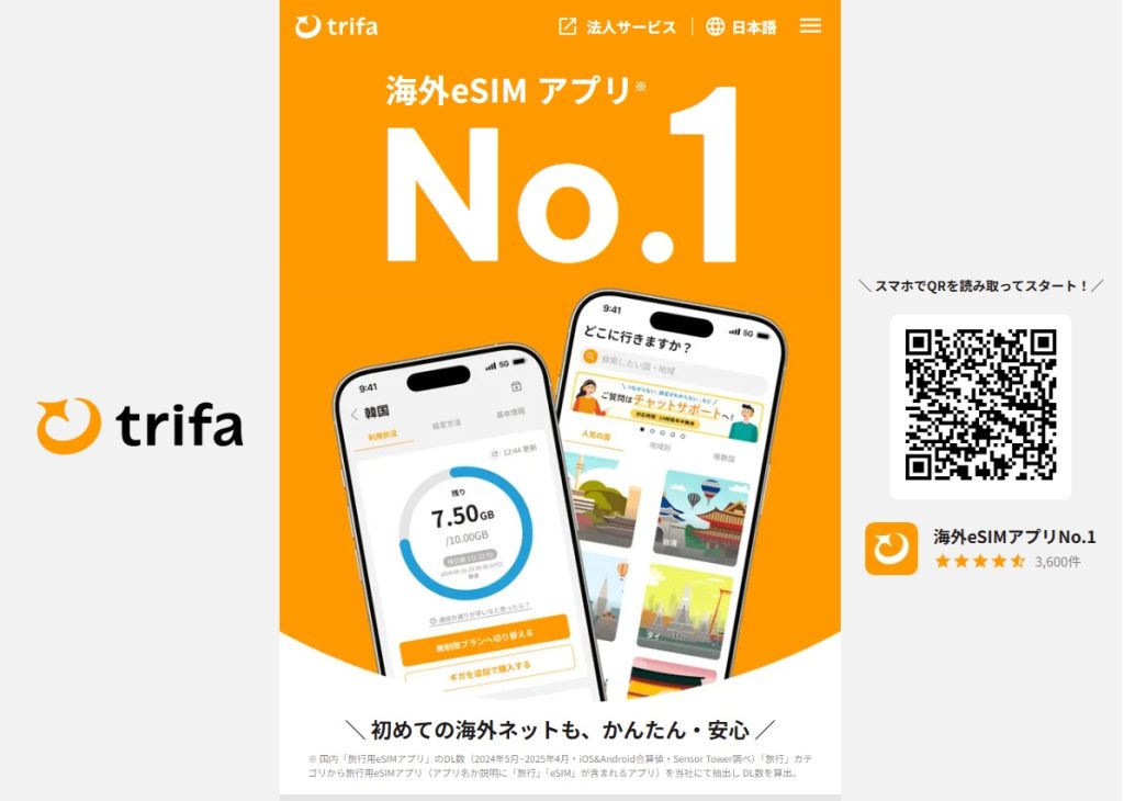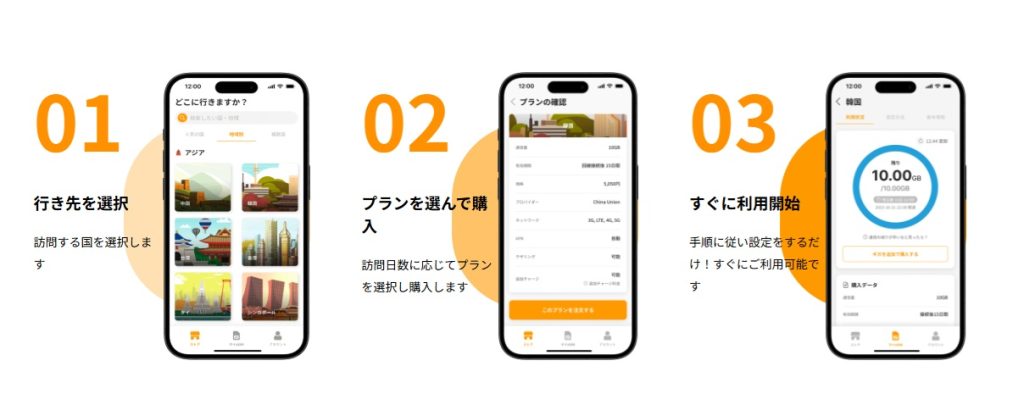 今お使いのスマホをそのまま韓国で利用したい場合は、オンラインでかんたんに必要なデータ容量や日数分だけを安く契約できる海外用eSIMがおすすめです。