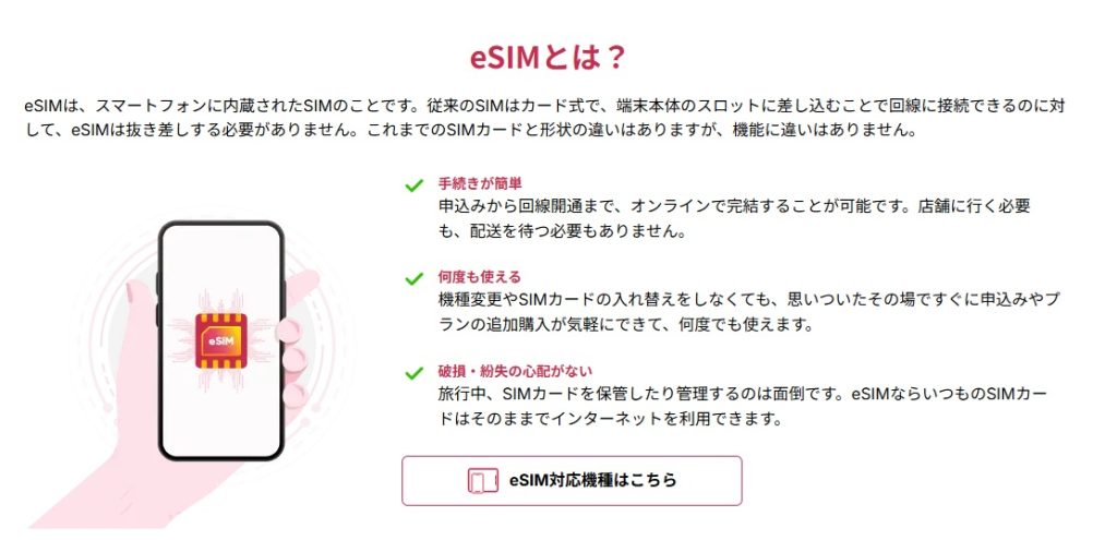 韓国で使えるeSIMには、以下のメリットがあるよ!