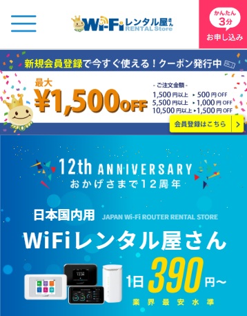 1日~2週間程度の短期間だけホームルーターをレンタルするなら、機種の選択肢が広くて料金も安いWiFiレンタルどっとこむがおすすめです。