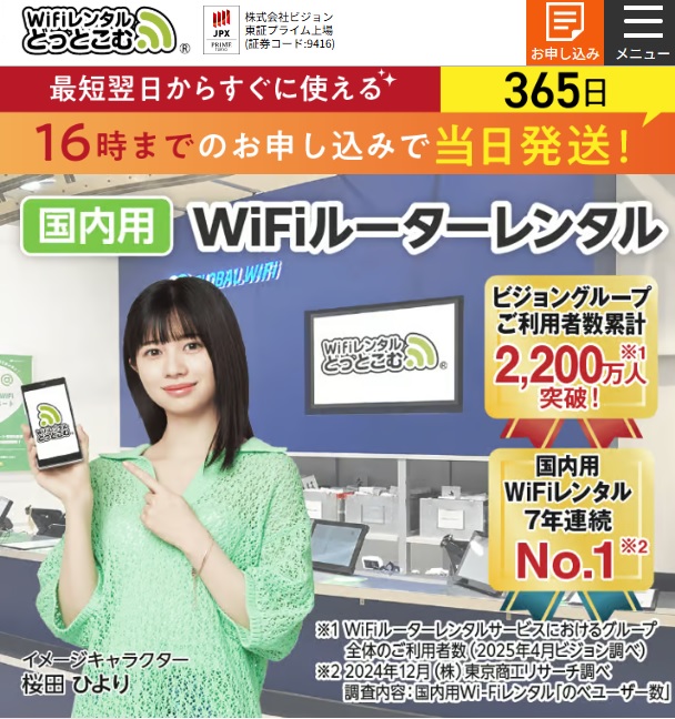 ソフトバンクのホームルーターなら1日526円、WiMAXの最新機種も1日700円からレンタルできます。