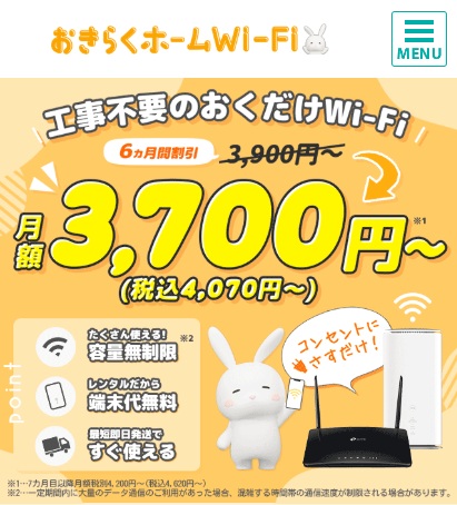 WiMAXのホームルーター最新機種をレンタルするなら、おきらくホームWi-Fi縛られないWiFiがおすすめです。
