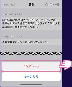 3. 次の画面で「構成プロファイルのインストール」をタップしましょう。