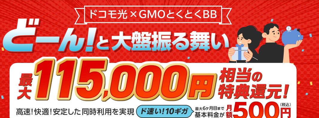 | 詳細 | 115,000円 | 4か月目 | 開通工事費実質無料 ドコモとのセット割 | |