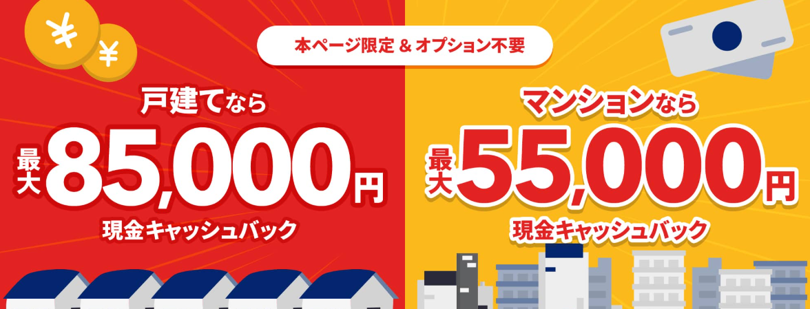 インターネット窓口で受け取れるキャッシュバック額は、戸建てよりマンションの方が下がってしまうことがあります。