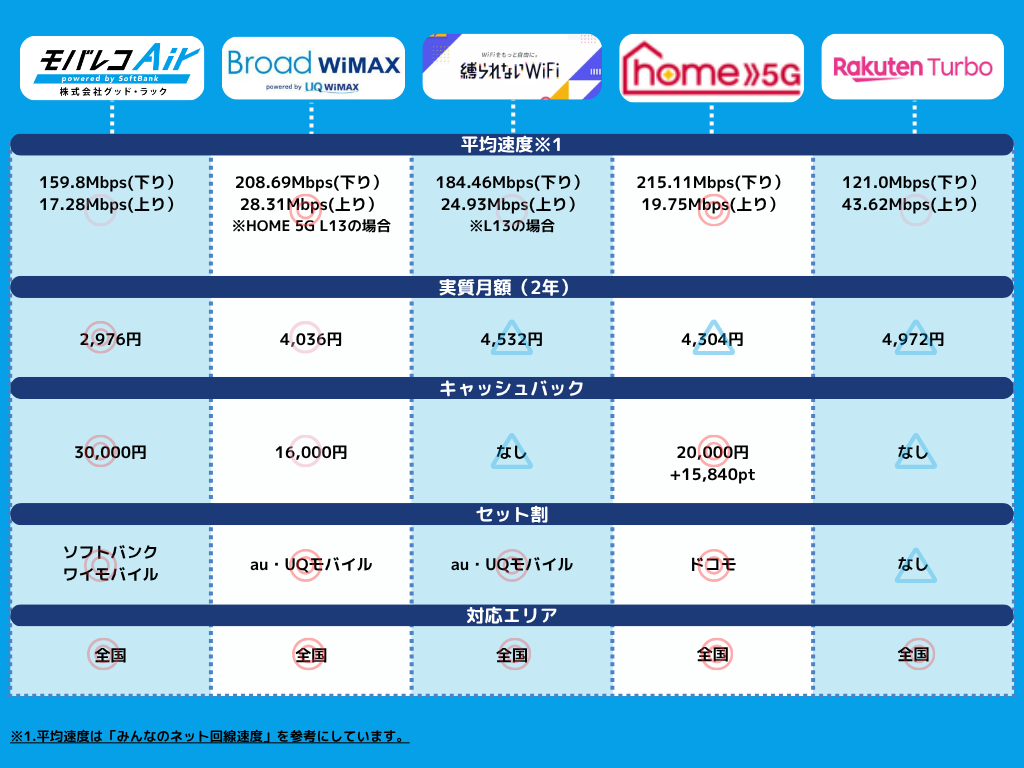 - 速度:みんなのネット回線速度から実際に契約している方の速度測定結果の平均を参照し、比較しています。