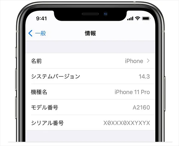 iOSのバージョンは、iPhoneの設定アイコン→一般→情報を選択すると、確認できます。