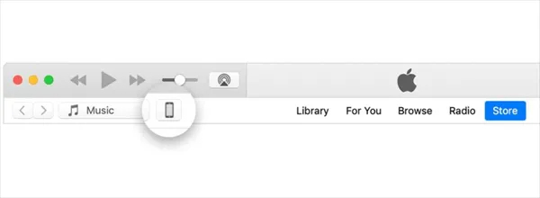 ③:iTunesのメニューバーで、スマホのアイコンを選ぶ