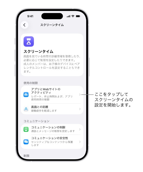 スクリーンタイムでは、主に以下のことができます。