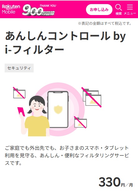 | フィルタリング機能 | 330円 | 0円 | ||