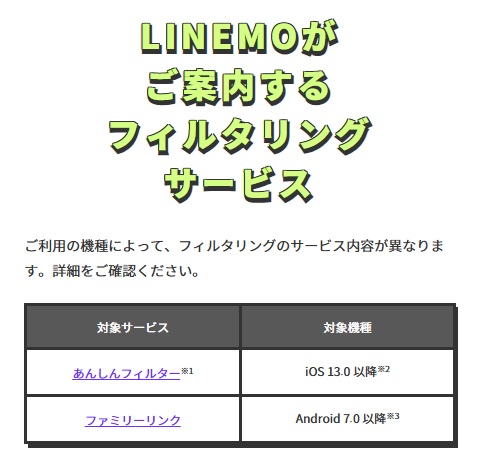 【フィルタリング機能対応の格安SIM例】
