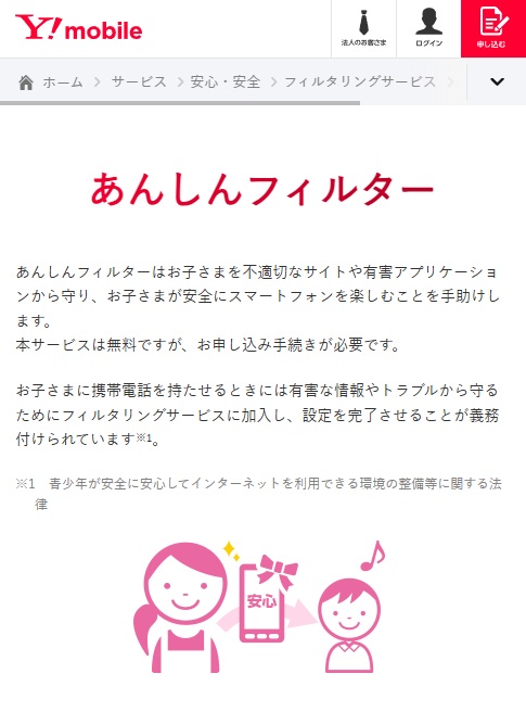 | 注意点 | ・18歳未満はフィルタリング契約(有償)が必須 ・エントリー月末締めで翌月請求から適用 |