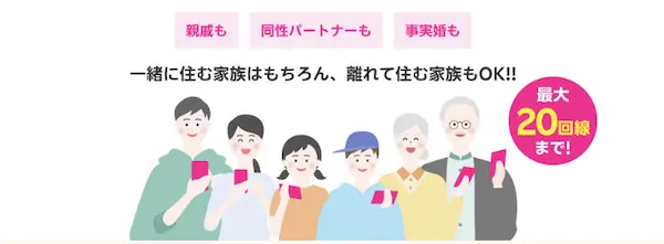 ![]() ![]() 家族セット割 | ![]() ![]() 最強家族 プログラム | ![]() ![]() 家族割引 |