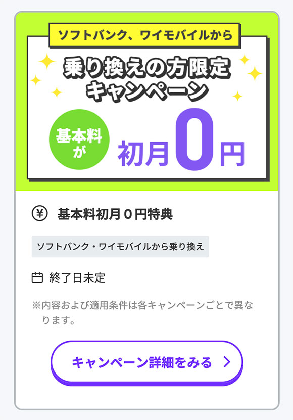 さらに、2025年6月30日まで、他社からの乗り換えの場合、4,000円相当のPayPayポイントが増量されるキャンペーンを実施しています。