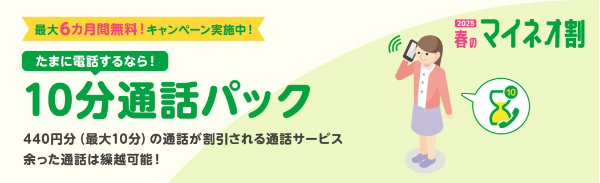 10分通話パック 最大6カ月間無料キャンペーン