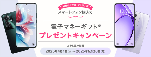 OPPO Reno11 A/OPPO A3 5G購入で電子マネーギフトプレゼントキャンペーン