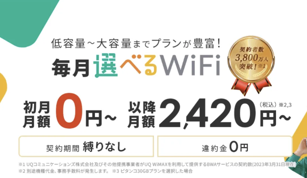 同社の代表的なサービスが「選べるWiFi」。これは毎月のデータ容量を0GBから無制限まで柔軟に選べるモバイルWiFiで、契約縛りがなく、必要な月だけ使える仕組みが特徴です。