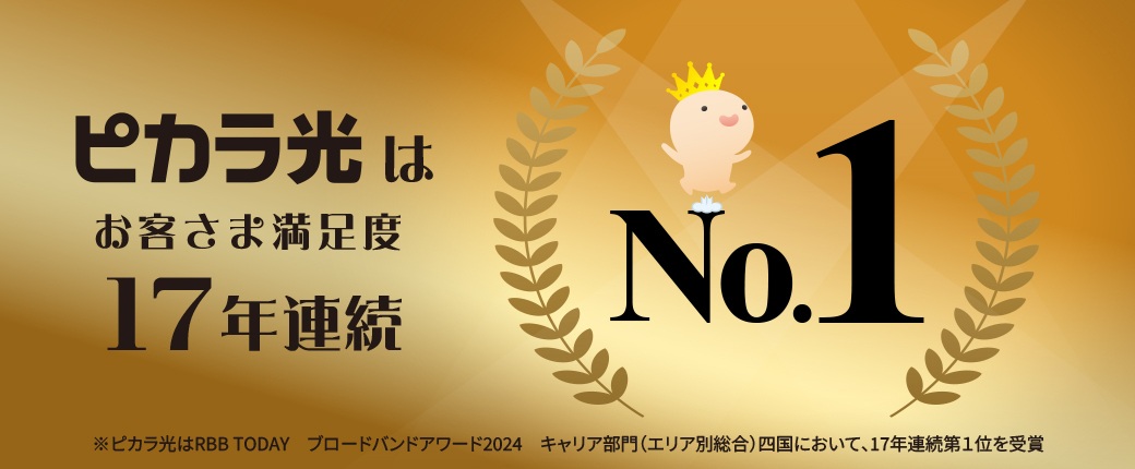 ピカラ光はRBB TODAY編集部主催の「ブロードバンドアワード キャリア部門(エリア別総合)四国」において、2008年から17年連続でお客様満足度1位を獲得している。