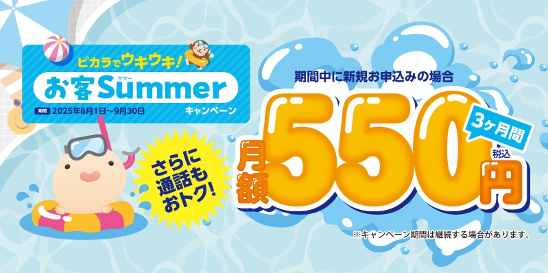 - お客Summerキャンペーンで3ヶ月間440円割引