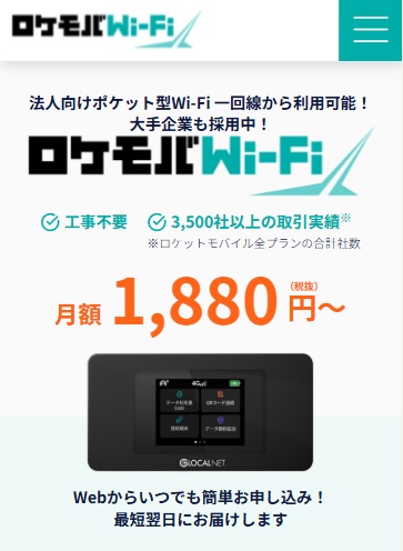 結論から言うと、法人向けポケット型WiFiでおすすめなのは「ロケモバWi-Fi」です。