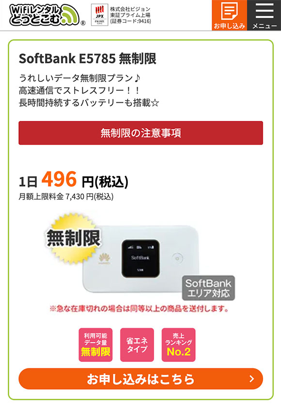 しかしソフトバンクのポケット型WiFi専用プランは月間で利用できるデータ容量が50GBまでが上限で、スマホの無制限プランをテザリングで利用した場合でも50GBが上限になります。