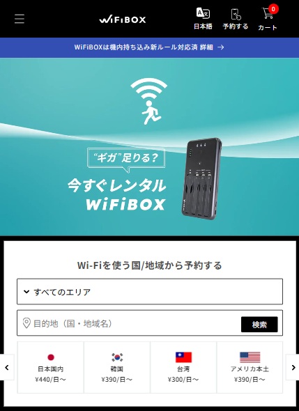 WiFiBOXは海外利用がメインのサービスでしたが、日本国内専用プランも登場し、1日440円から利用できるようになりました。