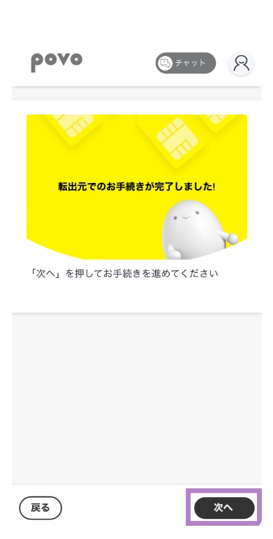 旧端末のpovoからアプリからeSIMの発行手続きをして、新端末でeSIMの設定をする