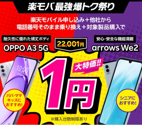 結論:2025年12月現在、楽天モバイルではスマホ1円キャンペーンが実施中です。