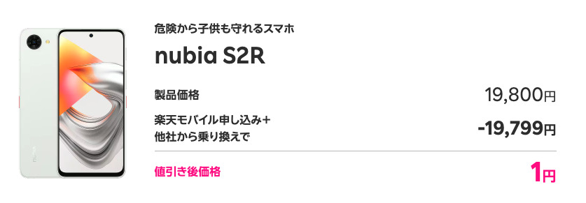 2025年12月発売のnubia S2もキャンペーンにより一括1円で購入できます。