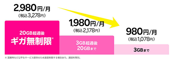 同じ月間3GB前後のデータ容量でも、楽天モバイルは1/5以下の料金で抑えられるんですね!