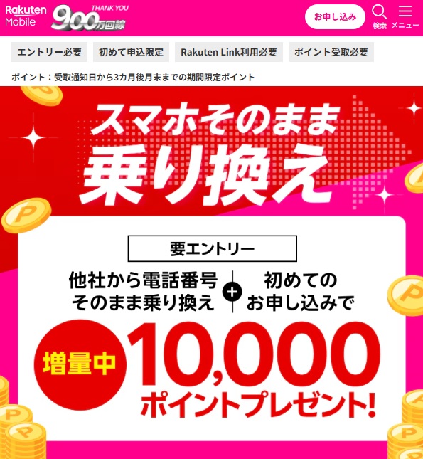 乗り換えなら最高額の14,000円分の楽天モバイルがもらえる三木谷キャンペーンは、やっぱり魅力的なんですね!
