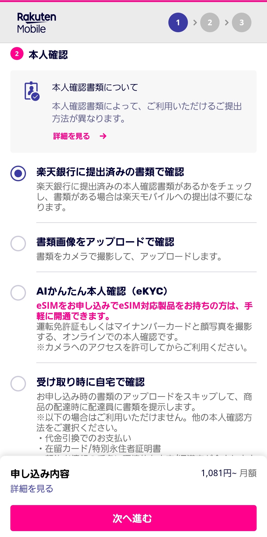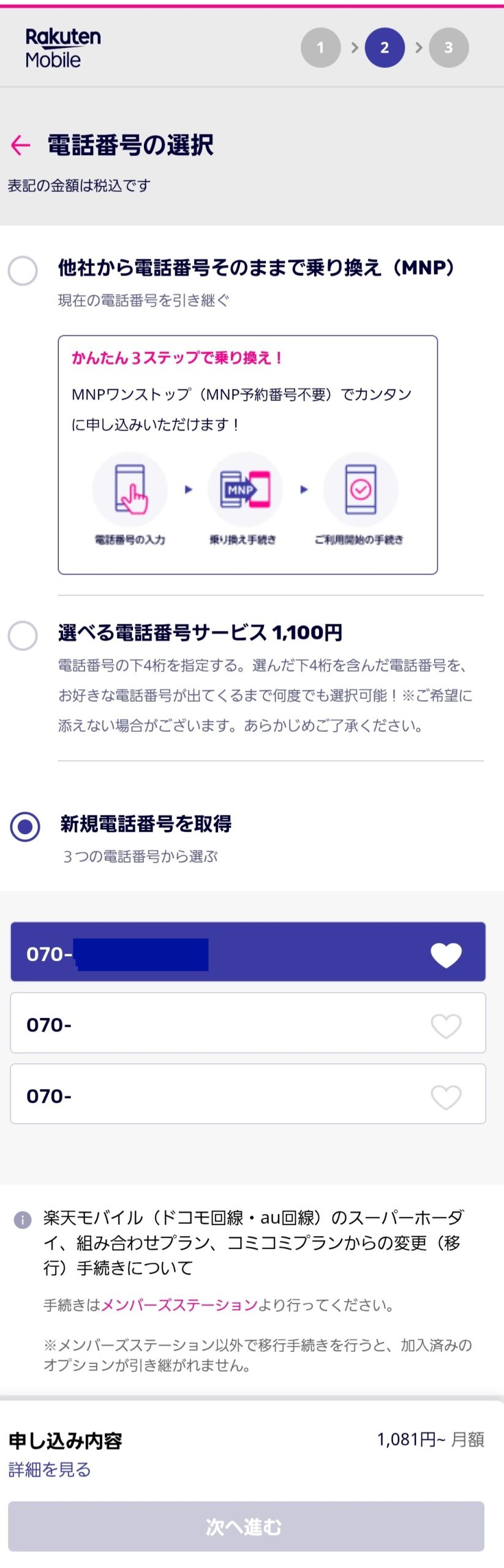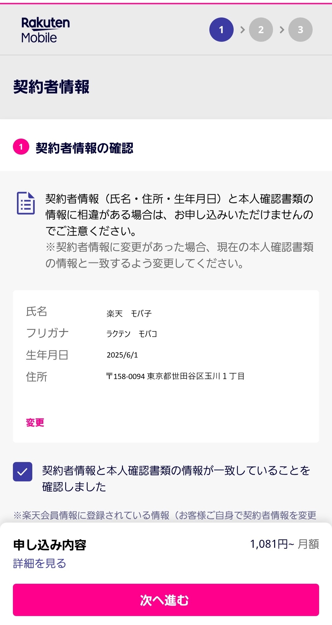 - 楽天モバイルの申し込み画面より先に個人情報やクレジットカード情報を聞かれることはない