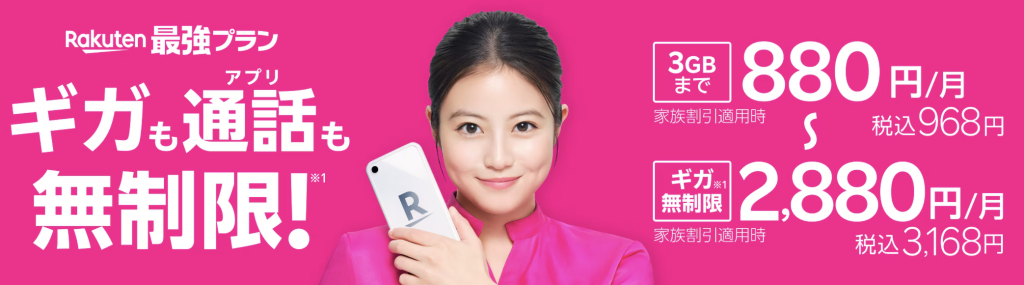 - 楽天モバイルの通信インフラ(ギガ無制限)