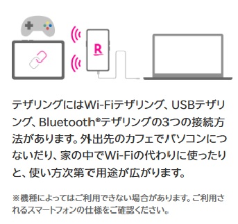 • 楽天回線対応のスマホならテザリング可能