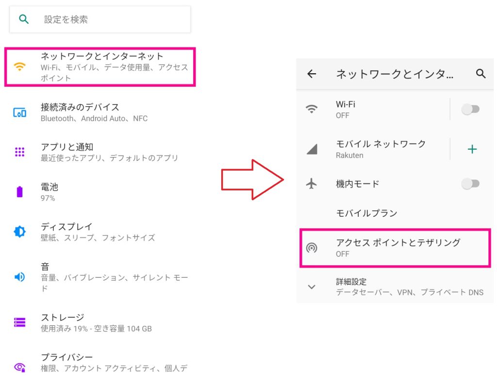 Androidで楽天モバイルのテザリングを設定する方法