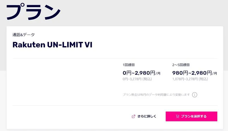 次にプランを選択。最新のプランを利用したい方は「Rakuten最強プラン」を選択してください。