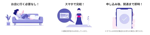 物理的なSIMカードが必要ないeSIM対応端末を持っていれば、申し込み後すぐにスマホを使うことが出来ます。