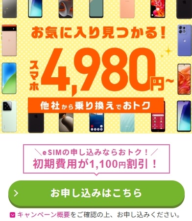 ただし、eSIMの場合は特典額が異なる可能性もあるので、申し込み前に必ずキャンペーン内容を確認しておきましょう。