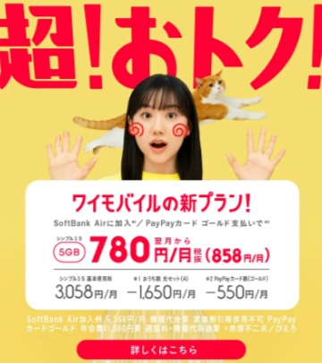 通信品質のリスクを避けたい場合でも、同じソフトバンクグループの回線を使うワイモバイルなら、環境を大きく変えずに月額料金だけを抑えることができます。