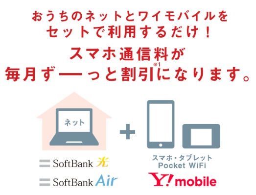 ワイモバイルはソフトバンク光モバレコエアー(ソフトバンクエアー)とセットにすることで最大1,650円の割引を受けられます。