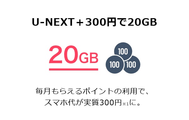 U-NEXTユーザーであれば、月間20GBのスマホプランを最安で月額300円で利用できる計算だ。