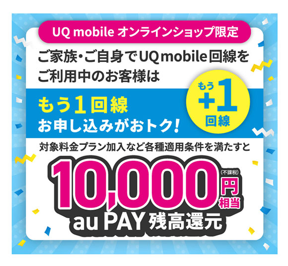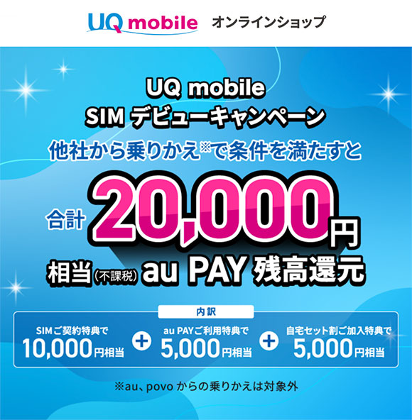 UQ mobile SIMデビューキャンペーン・SIM契約で10,000円(不課税)相当のau PAY残高還元
