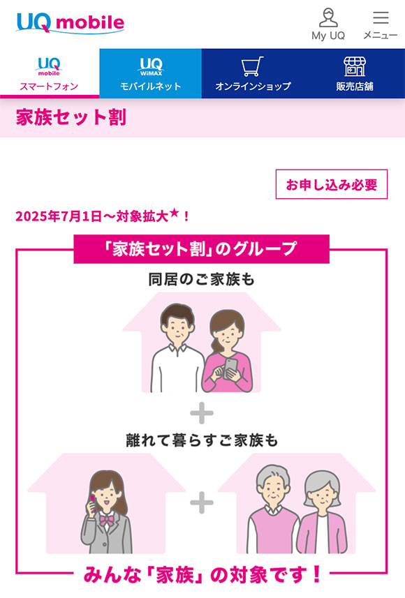 また、対象の機種や割引額は定期的に変わりますが、お目当てのスマホが対象かは、UQ mobile オンラインショップでチェックできます。