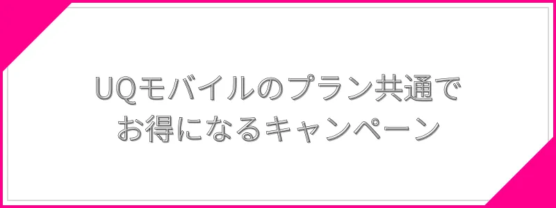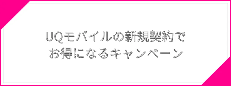 UQモバイルの「新規契約」でお得になるキャンペーンについて、現在は以下のキャンペーンが開催されています。