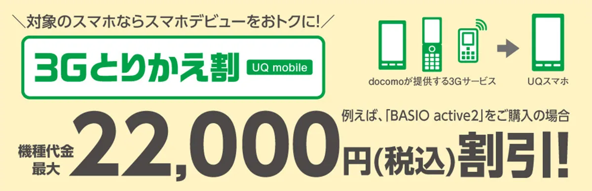 3Gとりかえ割プラス(UQ mobile)docomoが提供する3Gサービスから乗り換えで、